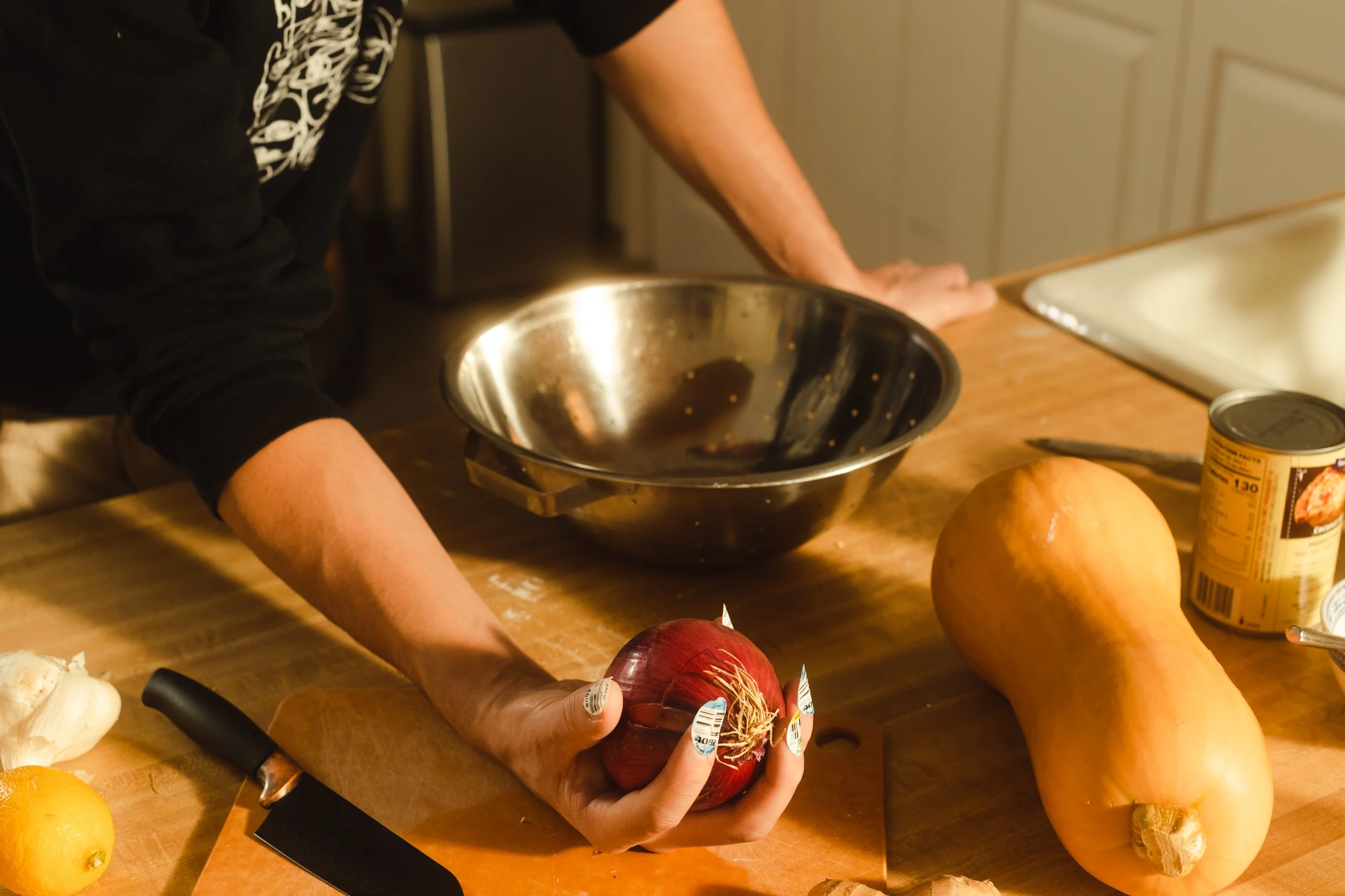 “Back in 2019, when my now-partner and I were still coyly dating, we'd meet up at least once a week to cook a meal together. 'Aute Cuture' by Rosalía was always part of the soundtrack. Inspired by the music video, we'd peel off the oval labels from our onions and bell peppers and stick them on our fingernails, lip syncing with our hands as we sauteed.
